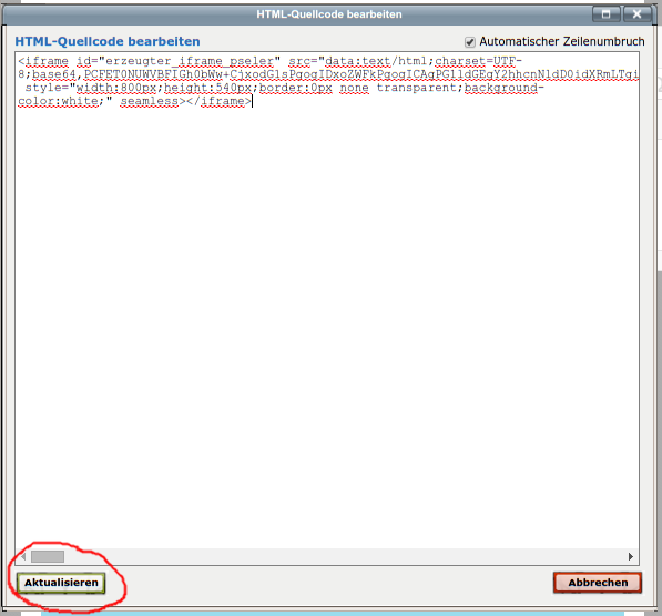 Schritt 2: HTML-Quelltextbearbeitungs-Fenster öffnen